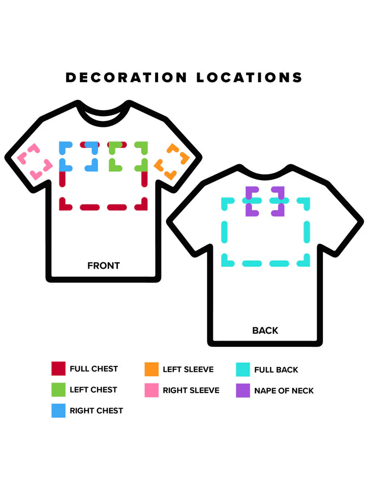 Note: All Apparel Pricing Follows: 2XL +$2, 3XL +$3, 4XL +$4, 5XL +$5, 6XL +$6